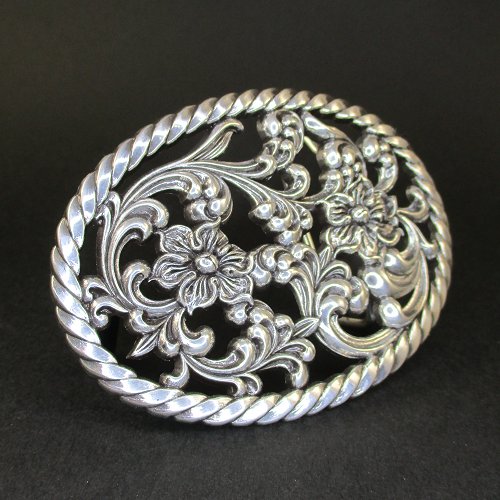オーバル オープンワーク フラワートロフィーバックルは、高品質なメタル合金を用いて職人の手で丁寧に製作されています!